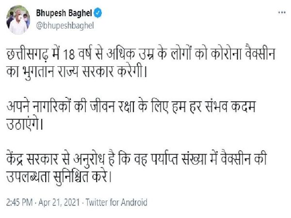 18 साल से ज्यादा उम्र के युवाओं को कोरोना वैक्सीन लगाने के मुद्दे पर अब सियासत के अलग-अलग रूप देखने को मिल रहे हैं। 18 साल से ज्यादा उम्र वालों के फ्री वैक्सीनेशन पर अब कांग्रेस शासित राज्यों में ही अलग-अलग राय देखने को मिल रही है। छत्तीसगढ़ की कांग्रेस सरकार ने 18 साल से ज्यादा उम्र वालों को फ्री वैक्सीनेशन करवाने की घोषणा कर दी है। उधर, राजस्थान के मुख्यमंत्री अशोक गहलोत ने केंद्र सरकार से 18 साल से ज्यादा उम्र वालों का फ्री वैक्सीनेशन करवाने की घोषणा करने की मांग करते हुए राज्यों पर भार नहीं डालने की बात कही है।