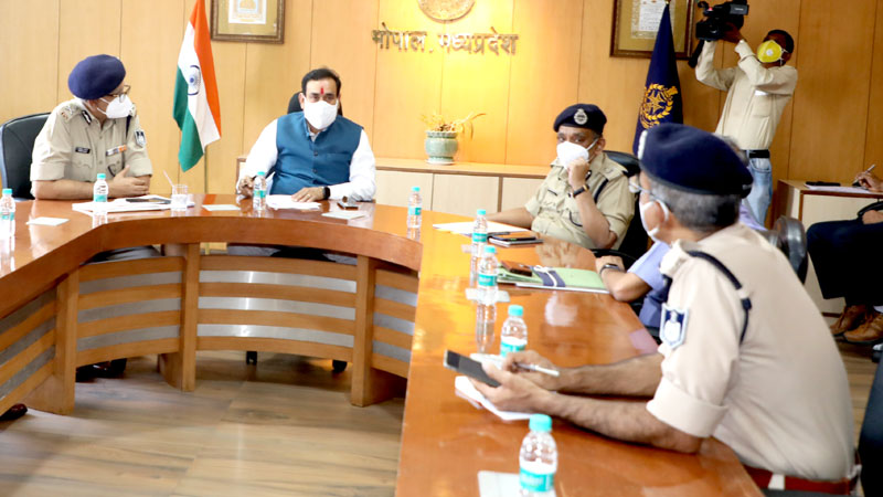 गृह मंत्री डॉ. नरोत्तम मिश्रा ने रविवार को पुलिस मुख्यालय में वरिष्ठ अधिकारियों के साथ कोरोना महामारी से निपटने के लिए प्रबंधों को पुख्ता करने और इंतजामों की समीक्षा की। उन्होंने ऑक्सीजन और रेमडेसिविर इंजेक्शन की कालाबाजारी को रोकने के लिए टास्क फोर्स बनाने के निर्देश दिए। बैठक में पुलिस महानिदेशक श्री विवेक जौहरी एवं अन्य आला अधिकारी मौजूद रहे।