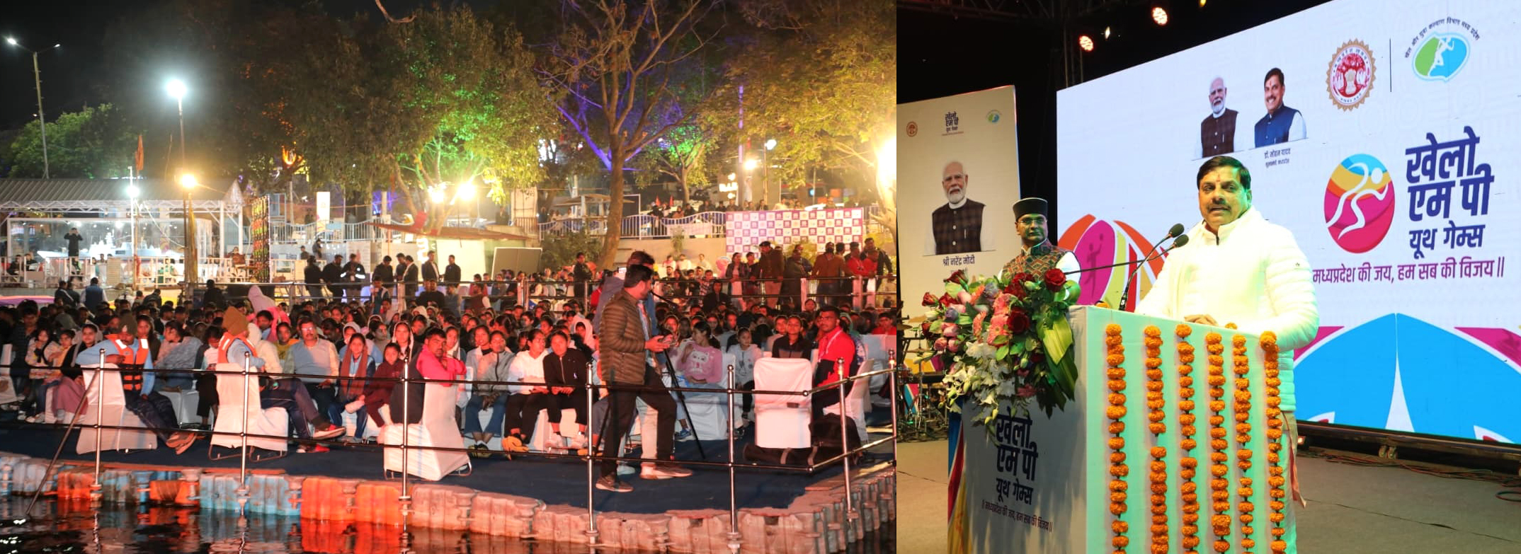मुख्यमंत्री डॉ. मोहन यादव ने कहा है कि खेलो एमपी यूथ गेम्स की भव्य लांचिंग ओलम्पिक खेलों की तरह हुई है। आगाज़ ऐसा हुआ है तो अंजाम भी बहुत सुखद ही होगा। राज्य सरकार खेल, खिलाड़ी और खेल मैदानों के उन्नयन के लिये कार्य कर रही है। खिलाड़ियों को लाखों नहीं, करोड़ों तक की सुविधाएँ उपलब्ध कराने के लिये राज्य सरकार प्रतिबद्ध है। मुख्यमंत्री डॉ. यादव ने भोपाल के बोट क्लब पर खेलो एमपी यूथ गेम्स का शुभारंभ किया। मुख्यमंत्री डॉ. यादव ने कहा कि यहां किसी वैश्विक आयोजन का नजारा दिख रहा है। उन्होंने आयोजक खेल एवं युवा कल्याण मंत्री और उनके विभाग को बधाई दी। मुख्यमंत्री ने कहा कि दिल से किया गया कार्य इसी तरह छटा बिखेरता है। समारोह में वॉटर प्रोजेक्शन, लेजर-शो, भव्य आतिशबाजी, शेफाली अल्वारेस एवं दिव्या कुमार की प्रस्तुति के साथ खेलो एमपी यूथ गेम्स की शुरूआत हुई।