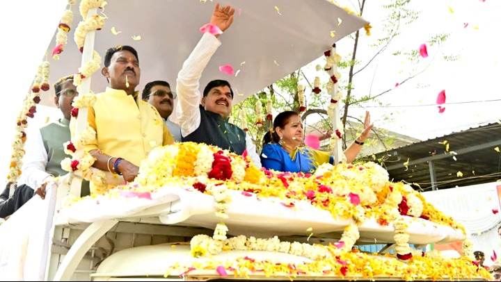 मुख्यमंत्री डॉ. यादव जीजामाता चौराहे से नेहरू स्टेडियम तक रोड-शो कर नागरिकों का अभिवादन किया। जहाँ उनका हजारों की संख्या में नागरिकों ने बड़े उत्साह एवं पुष्पवर्षा के साथ स्वागत एवं अभिनंदन किया। इस दौरान मुख्यमंत्री डॉ. यादव ने भी नागरिकों पर फूलों की बौछार कर अभिवादन किया। भव्य-रोड शो में सांस्कृतिक नृत्य के माध्यम से मुख्यमंत्री डॉ. यादव का आत्मीय भाव से धन्यवाद ज्ञापित किया।