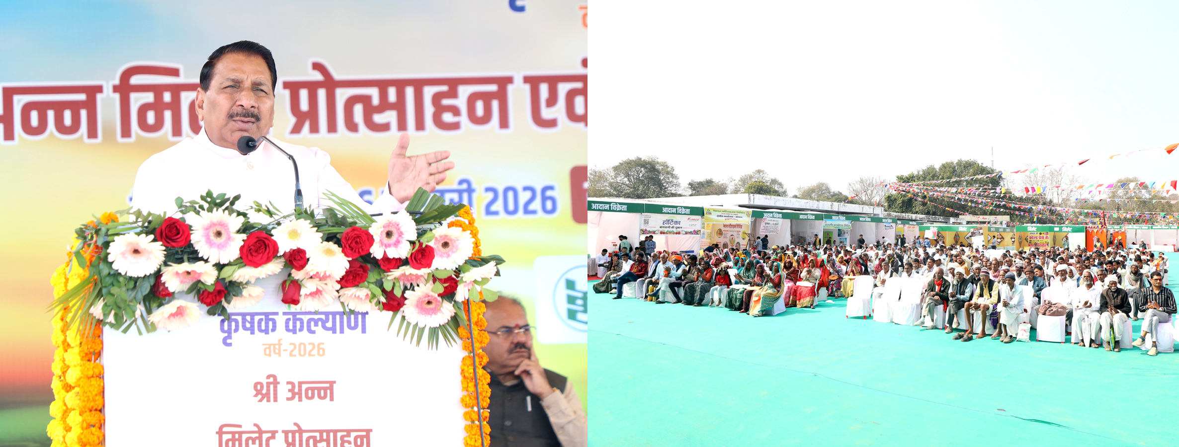 किसान कल्याण एवं कृषि विकास मंत्री श्री एदल सिंह कंषाना ने कहा है कि मिलेट केवल फसल नहीं, बल्कि स्वस्थ भविष्य और पर्यावरण संरक्षण की दिशा में एक क्रांतिकारी कदम है। उन्होंने कहा कि जिसे कभी मोटा अनाज कहा जाता था। प्रधानमंत्री श्री नरेन्द्र मोदी के प्रयासों से वही अनाज “श्रीअन्न” के रूप में विश्वभर में सम्मान पा रहा है। श्रीअन्न से मध्यप्रदेश आत्मनिर्भर किसान की ओर अग्रसर है। मंत्री श्री कंषाना दशहरा मैदान, टीटी नगर भोपाल में श्रीअन्न मिलेट प्रोत्साहन एवं आत्मा योजनांतर्गत कृषि विज्ञान मेला के शुभारंभ समारोह को संबोधित कर रहे थे।