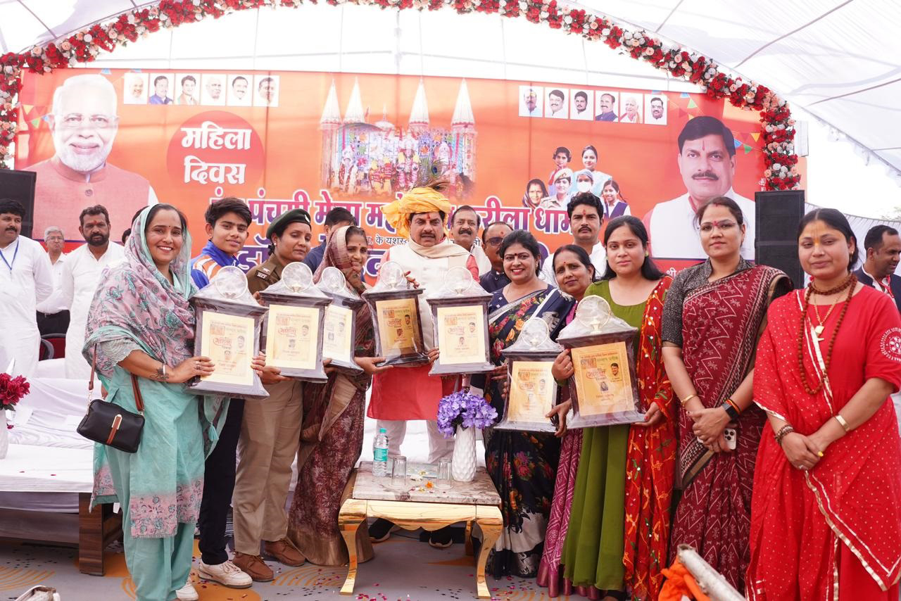 मुख्यमंत्री डॉ. यादव ने विभिन्न क्षेत्रों में उत्कृष्ट कार्य करने वाली जिले की सात महिलाओं को सम्मानित किया। इनमें शिक्षा के क्षेत्र में डॉ. अमिता सेठी, धार्मिक क्षेत्र में श्रीमती नैना शर्मा, खेल के क्षेत्र में सुश्री पूनम रघुवंशी, पर्यावरण के क्षेत्र में श्रीमती विनीता साहू, स्वंयसिद्धा के क्षेत्र में श्रीमती गायत्री शर्मा, स्वास्थ्य के क्षेत्र में श्रीमती छाया बैस तथा समाजसेवा के क्षेत्र में श्रीमती कुलविंदर कौर को सम्मानित किया गया।